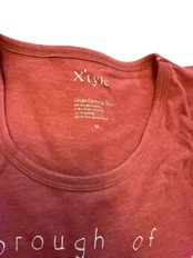 こちらは「BROADWAY Manhattan」のロゴが印象的な、赤系カラーのTシャツ。程よいゆったりシルエットで、デニムやスカートにも合わせやすい一枚です。