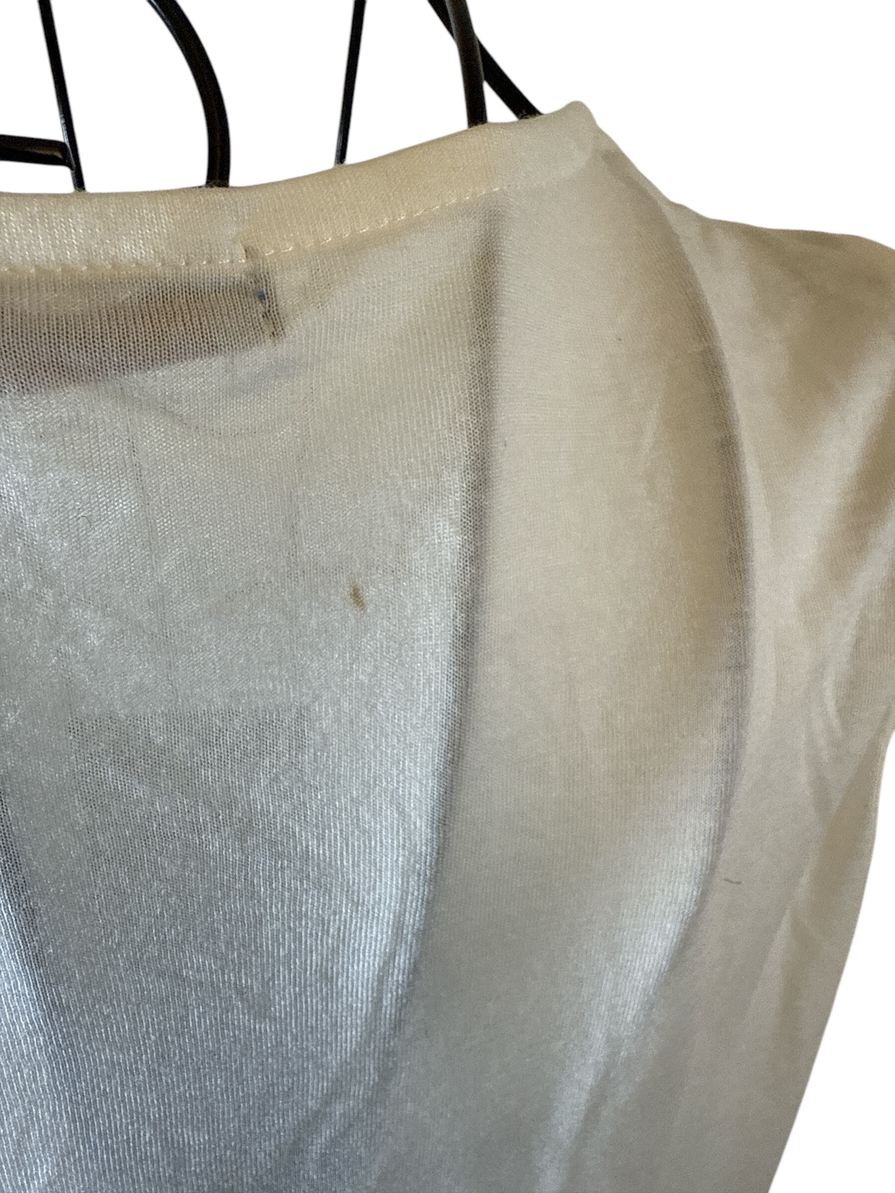 こちらは繊細なレースをあしらった、フェミニンなノースリーブトップス。1枚でも重ね着にも使いやすく、夏から秋口まで活躍します。未使用タグ付きですが、背面に薄い汚れがございます。画像をご確認の上、ご検討ください。