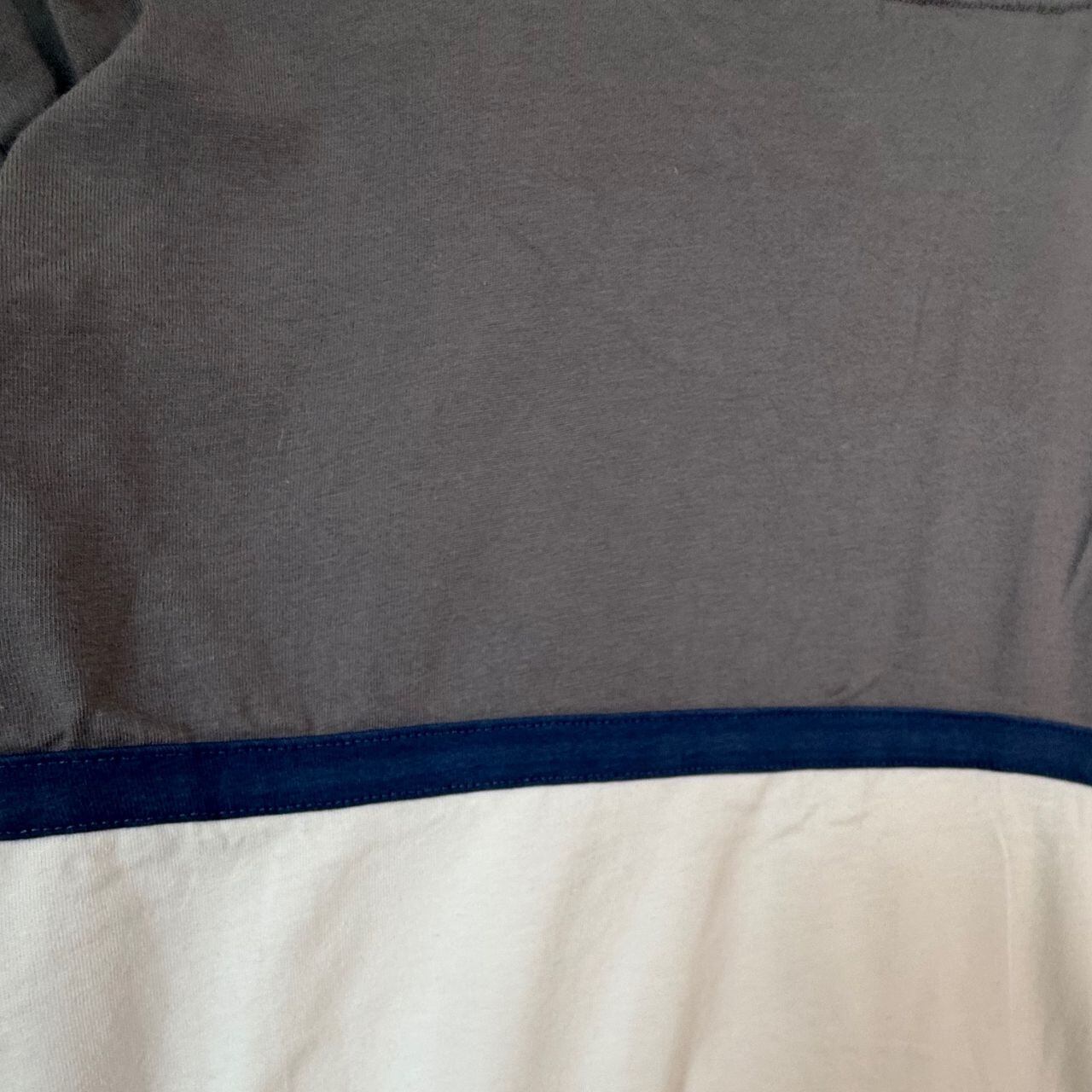 本商品は、バイカラー(チャコールグレー×オフホワイト)の切替デザインが特徴的なTシャツ。胸元にはブランドロゴ刺繍入りで、シンプルながらスタイリッシュな一枚です。ユニセックスで着用可能なデザインとカラーで、1枚でもインナーとしても重宝する万能アイテム。