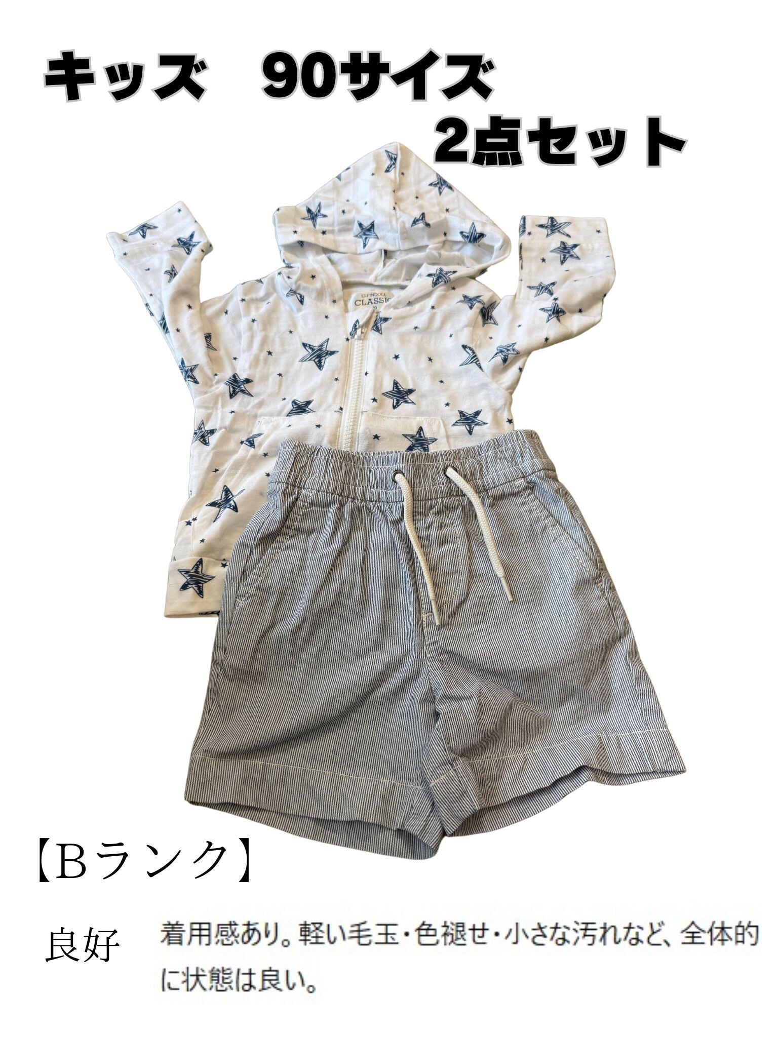 キッズ 90サイズ フード付きパーカー&短パンセット(古着ランクB)